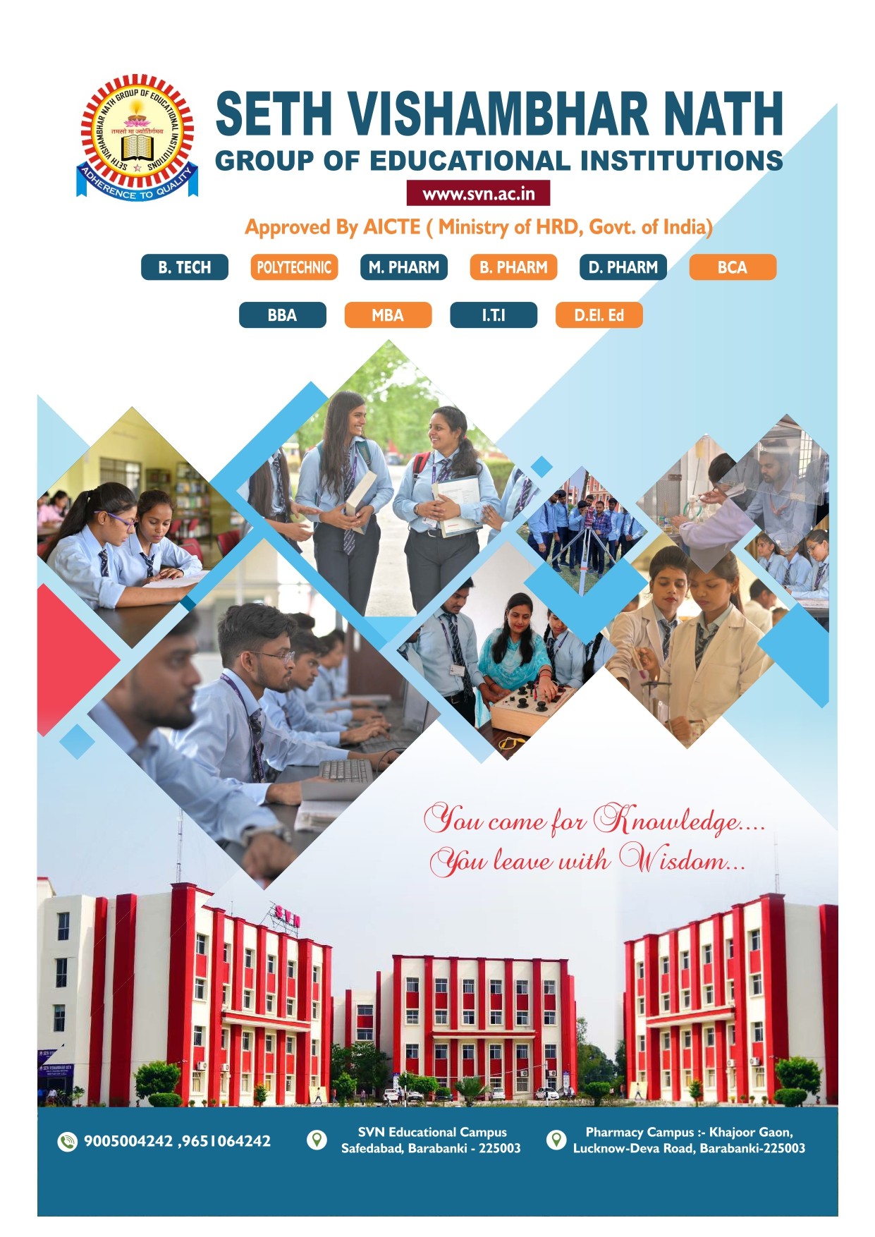 Welcome to Seth Vishambhar Nath Institute of Pharmaceutical Sciences/ The institute provides all 12th-grade Science students to pursue D. Pharm and B. Pharm courses