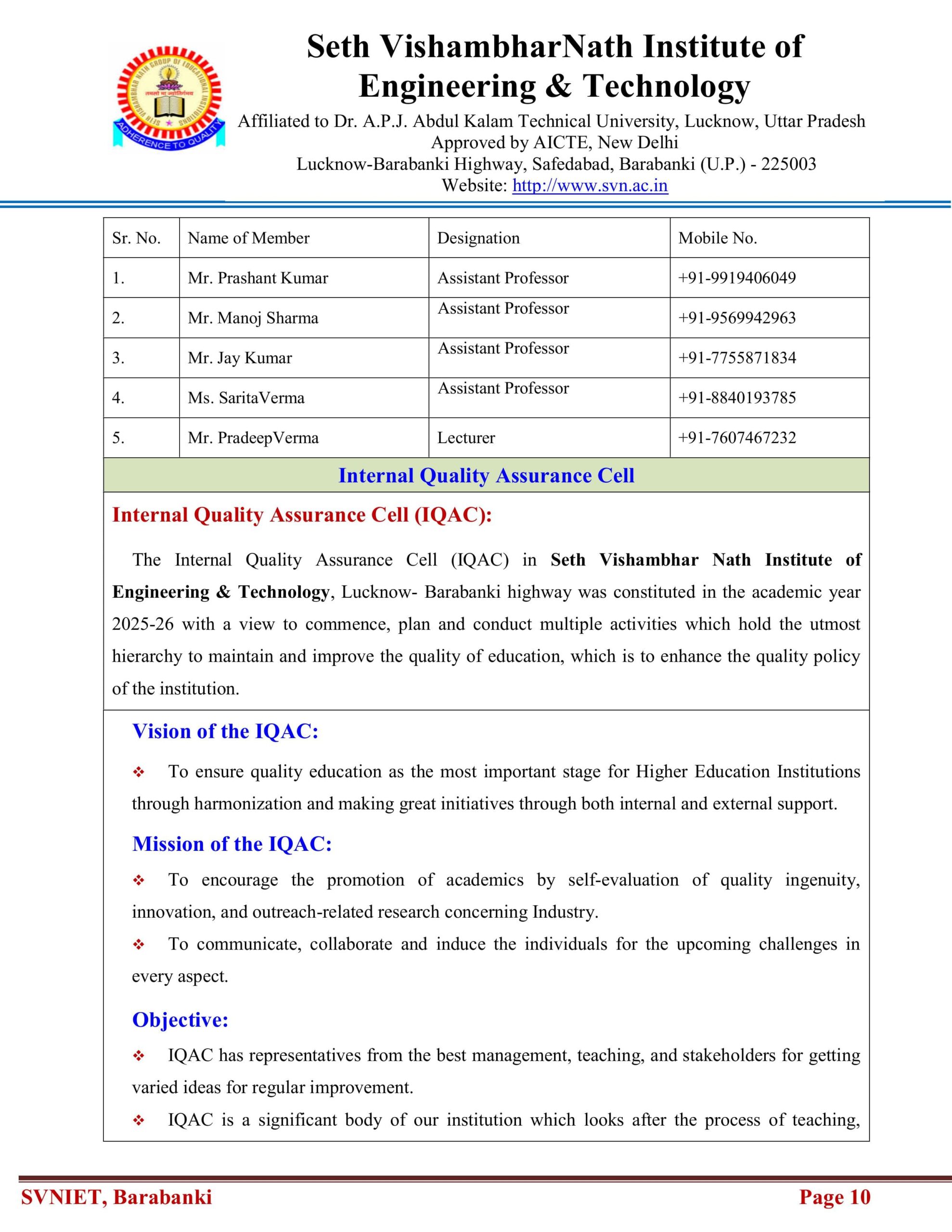 Mission of IQAC